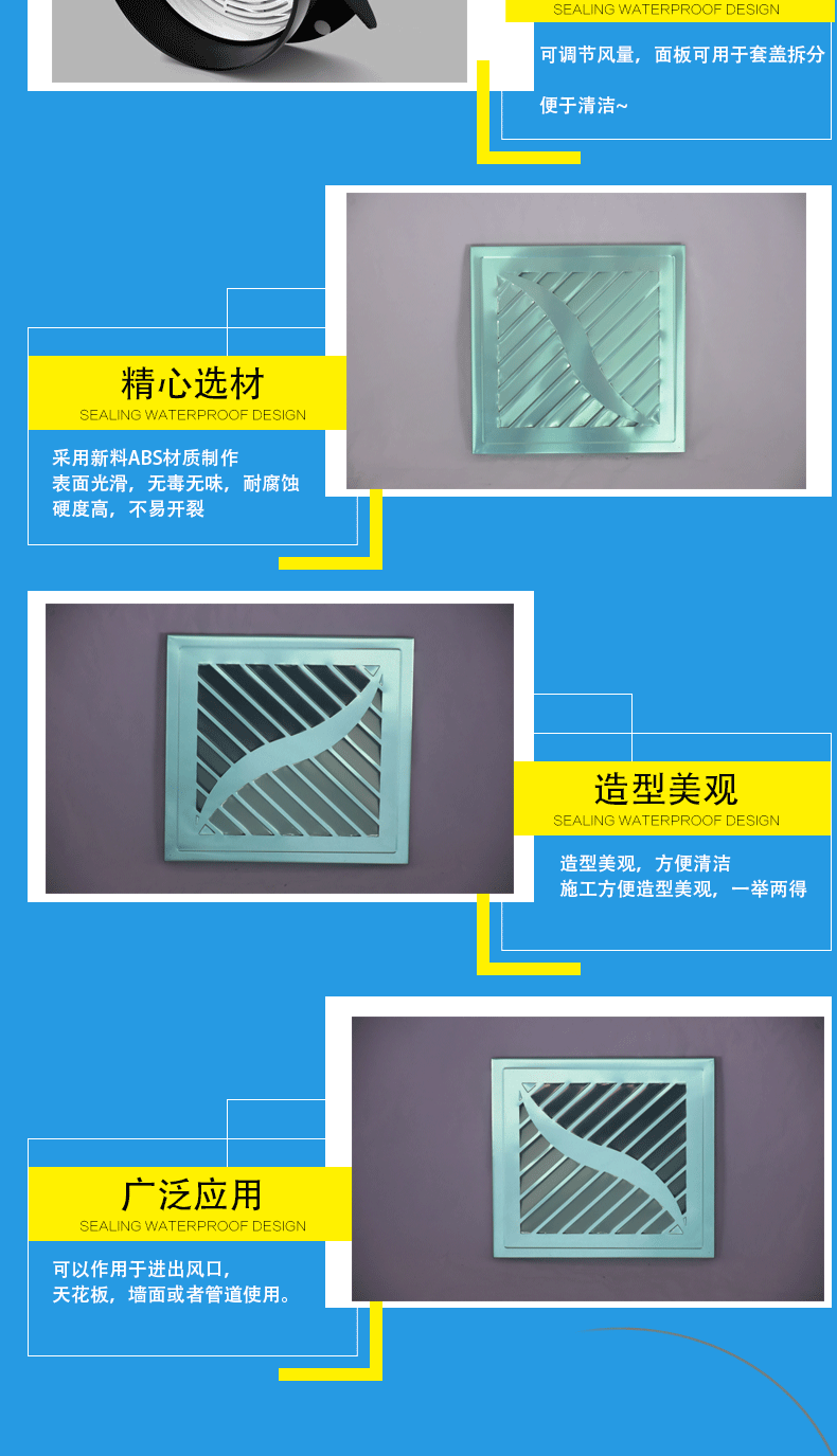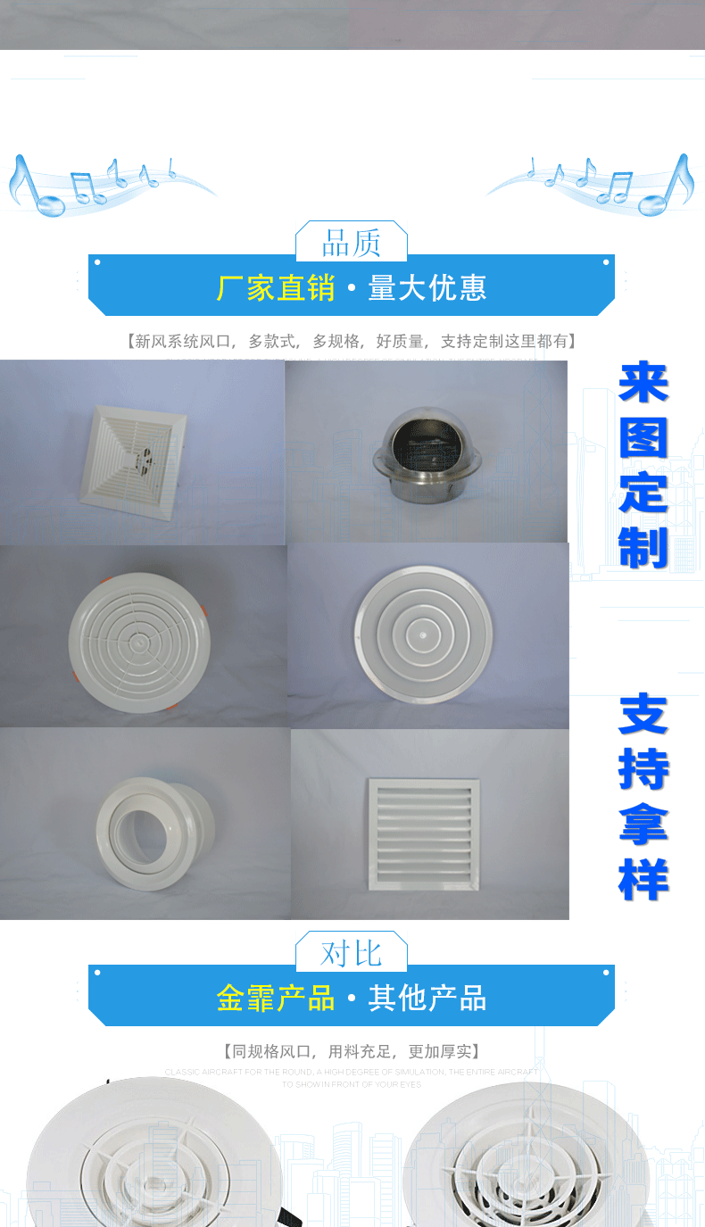 制作:風口做成加厚型(外框1.0mm,葉片0.8mm);一般制作都是加厚型的,要薄型的可以跟客服聯(lián)系;也可烤兩遍漆,顏色可按客戶要求進行烤制(價格另計,量大從優(yōu))